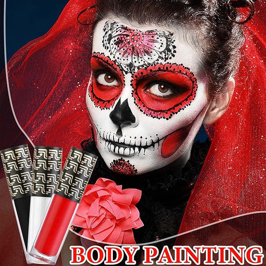 3 PCS Matte Black & White & Red Liquid Lipstick,Professional Halloween Special Effects Makeup Long Lasting Waterproof Face Body Paint Lip Gloss for Cosplay Goth Makeup