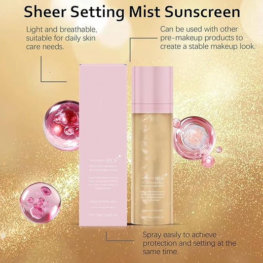 Sheer Setting Mist Sunscreen SPF 50 for Face & Body | Water-Resistant Shimmering Oil Spray | Hydrating Non-Greasy Glow Finish | Oil Control & Long Lasting(75ml)