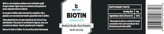 Belle Chemical Biotin (Vitamin B7) Pure Powder 4oz (113g) Hair, Nails, Metabolism, Cell Growth