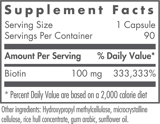 Nutricology HiBiotin Supplement - Extra Strength Biotin Pills, 100,000mcg Biotin, High Dose Biotin, Vegetarian Capsules, Hypoallergenic, Gluten Free - 90 Count