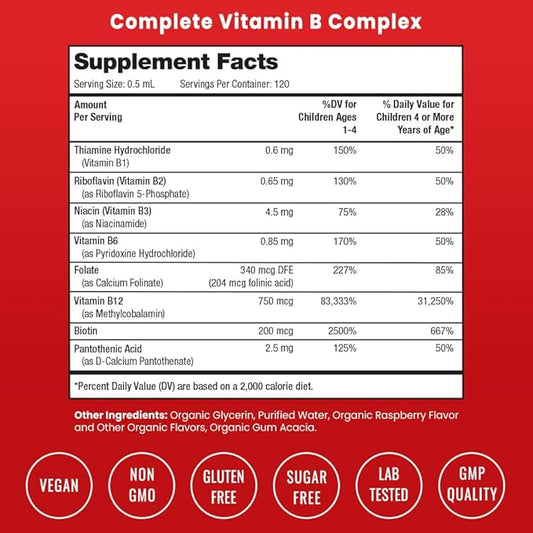 NutraChamps Vitamin B Complex for Kids, B1, B2, B3, B6, B7, B9 & Methyl B12, Kids B Complex Liquid Drops Supplement, Energy, Focus, Metabolism, Natural Berry, 120 Servings, 4 Month Supply