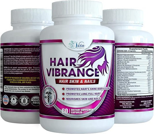 Hair Vibrance Hair Skin and Nails Vitamins - Doctor Formulated with 15000mcg Biotin for Hair Growth and 23 Hair Growth Vitamins for Longer Shiny Full Healthier Hair Skin Nails and Lashes (3 Pack)