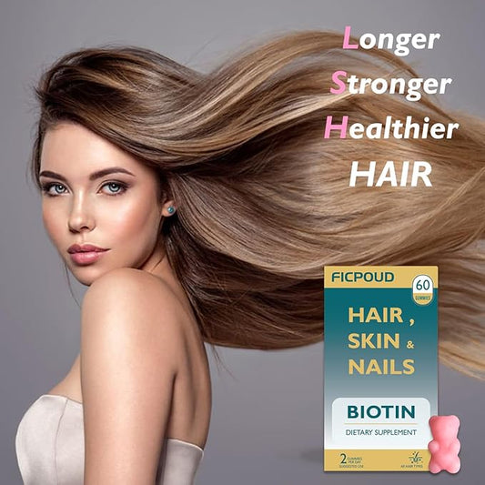 Biotin Gummies for Hair, Skin and Nails - Hair Vitamins for Men & Women, 10,000mcg Max Strength Vitamin B7 for Hair Growth and Stronger Nails,60 Counts - Strawberry Falvor-041