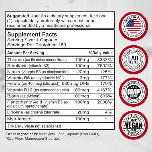 Divine Bounty Super B Complex Vitamins - All B Vitamins Including B12, B1, B2, B3, B5, B6, B7, B9, Folic Acid - Vitamin B Supplement - Support Healthy Energy Metabolism - 180 Vegetarian Capsules