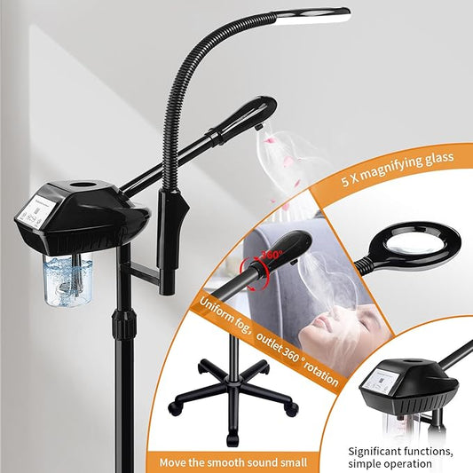 Professional Facial Steamer with Ozone, Hot&Cold Mist Facial Steamer, Facial Humidifier on Wheels, Esthetician Steamer for Facial Deep Cleaning and Moisturize, Suitable for Spa, Salon and at Home Use