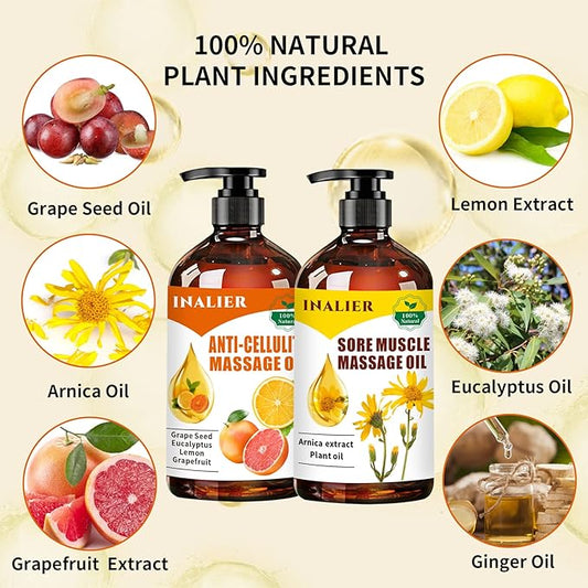 Arnica Sore Muscle Massage Oil – 100% Pure & Natural - Massage Therapy for Muscles & Joints – Body Oil Infused with Arnica Extract, Lavender Oil, Peppermint Oil & Chamomile Oil – 8 FL OZ