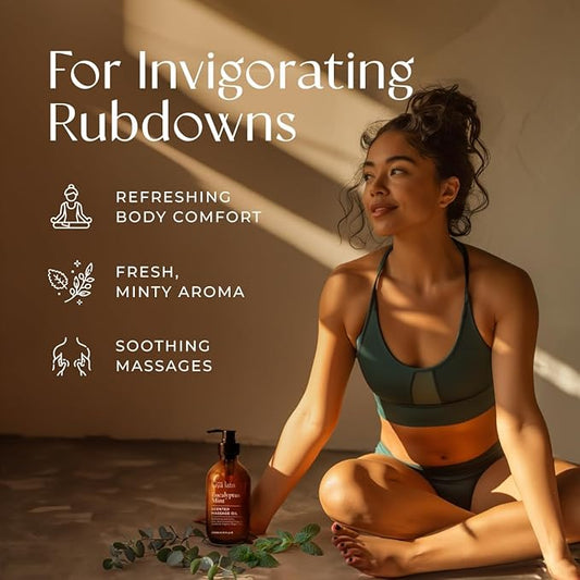Gya Labs Eucalyptus Mint Massage Oils - 6.76 Fl Oz - 100% Pure Natural Refreshing Aromatherapy Body Massage Oil for Sore Muscles - with Jojoba, Argan, Sunflower, Almond, Vitamin E & Eucalyptus