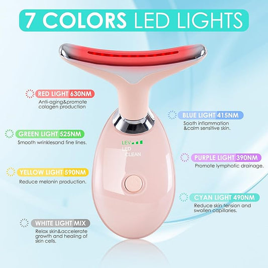 Facial Massager for Face and Neck, Red-Light-Therapy-for-Face and Neck, Face culpting Wand with 7 Color, at-Home Face Tool for Skin Care (Pink)