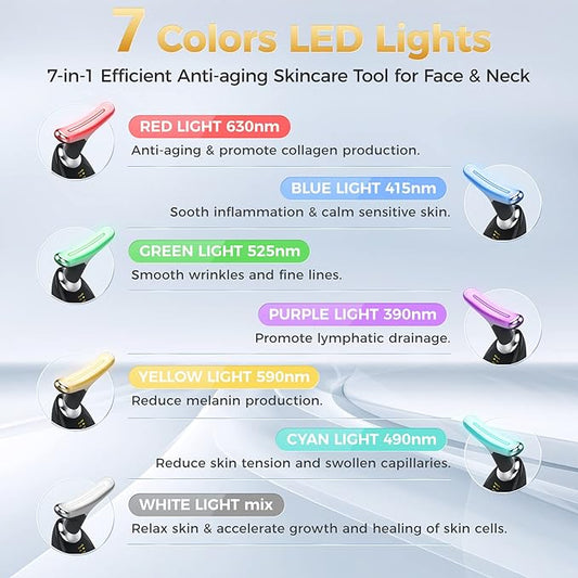Facial Massager for Face and Neck, 7-in-1 Face Neck Massager Tool with 4 Modes, Beauty Device Facial Massage for at-Home Skin Care