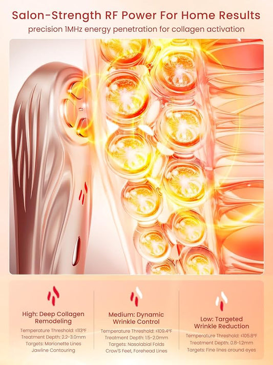 Radio Frequency Skin Tightening Device, Anti-Aging Face Machine for Wrinkle Removal, Lifting & Firming, Wireless Home Beauty Device with 3 Levels, at-Home Skin Renewal