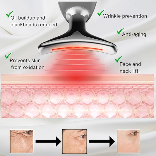 Facial and Neck Massager,Face Tool with 3 Colour Modes and Vibration,Facial Beauty Device for Skin Care (Pink)