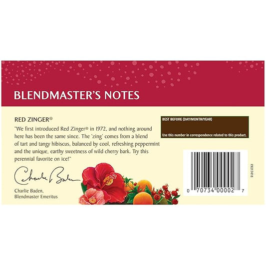 Celestial Seasonings Hibiscus Tea, Red Zinger Herbal Tea, Caffeine Free, 20 Tea Bags