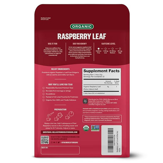 FGO Organic Red Raspberry Loose Leaf Herbal Tea, Cut and Sifted, Caffeine Free, Resealable Bag, 4oz (Pack of 1)