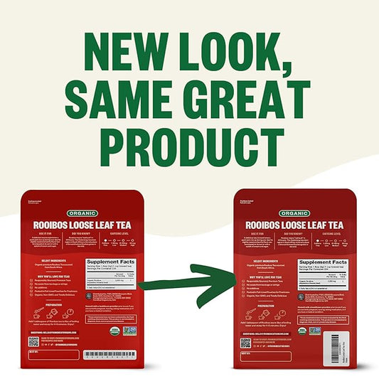 FGO Organic Rooibos Tea, 16 Ounce Loose Leaf Bulk Resealable Bag, Caffeine Free, Packaging May Vary (Pack of 1)