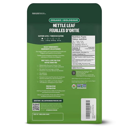 FGO Organic Nettle Leaf Loose Tea, Cut and Sifted, Caffeine Free, 4oz Resealable Bag, Packaging May Vary (Pack of 1)
