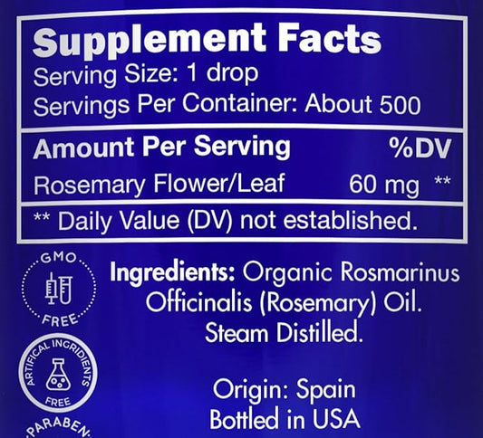 Organic, Rosemary Oil, Food Grade, for Hair, Growth – 100% Pure, Edible, Rosemary Essential Oil, by Zongle Therapeutics, 1 OZ