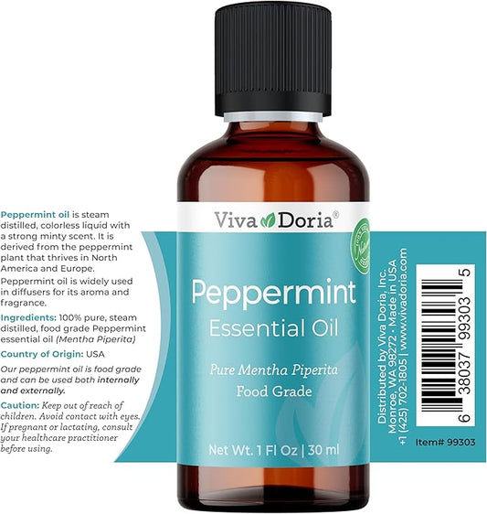 Viva Doria 100% Pure Northwest Peppermint Essential Oil, Undiluted, Food Grade, Steam Distilled, Made in USA, 30 mL (1 Fluid Ounce)