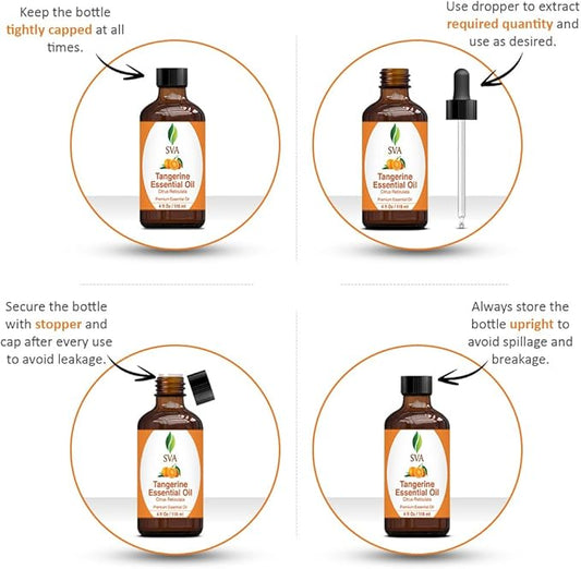 SVA Tangerine Essential Oil – 4 Fl Oz – 100% Natural Tangerine Oil - for Diffuser, Hair Care, Face, Skin Care, Aromatherapy, Scalp and Body Massage, Soap and Candle Making – with Dropper