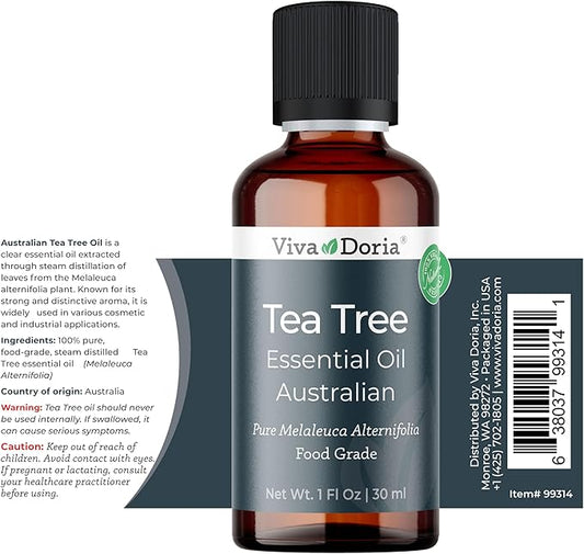 Viva Doria Tea Tree Essential Oil, 100% Pure, Natural, Australian Tea Tree Essential Oil, Undiluted, for Aromatherapy | Food Grade, 30 mL (1 Fluid Ounce)