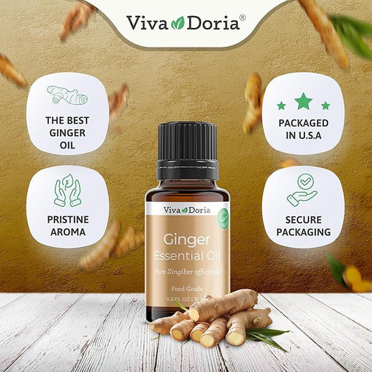 Viva Doria Ginger Essential Oil, 100% Pure Natural, Fresh Ginger Essential Oil, Undiluted, for Aromatherapy | Food Grade, 15 mL (0.5 Fluid Ounce)
