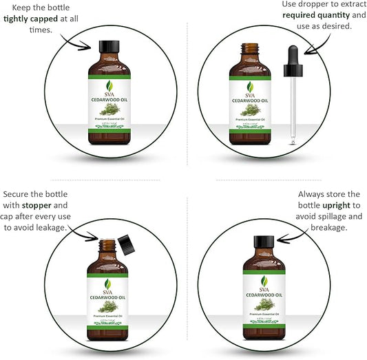 SVA Cedarwood Essential Oil – 4 Fl Oz – 100% Natural Cedar Juniperus Mexicana Oil - for Diffuser, Hair Care, Face, Skin Care, Aromatherapy, Scalp and Body Massage, Soap and Candles – with Dropper