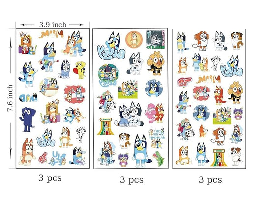 9 Sheets Blue Temporary Tattoos for Kids, Children's Party Favors