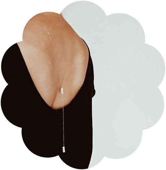 Boho Pearl Back Chain Necklace Gold Backdrop Necklace