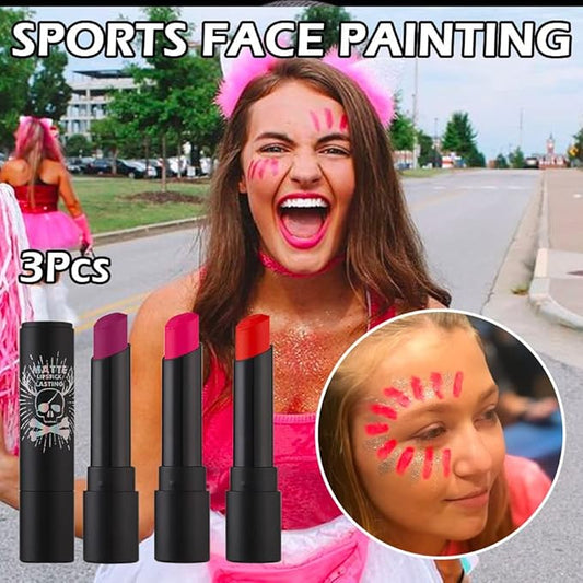 Kaely 3Pcs Face Paint Stick,Pro Eye Black Stick Baseball Football Softball,Easy to Color,Black White Red Matte Lipstick Face Body Paint Set,Halloween Birthday Party Clown Makeup Sets