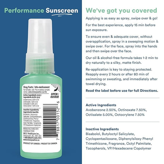 KINeSYS Performance Sunscreen Vanilla-Green Tea Scented Clear Spray Sunscreen, SPF 30, Hypoallergenic, Broad Spectrum UVA/UVB protection for Face & Body; Vegan, 700+ Sprays, 4 Fl Oz/120 mL