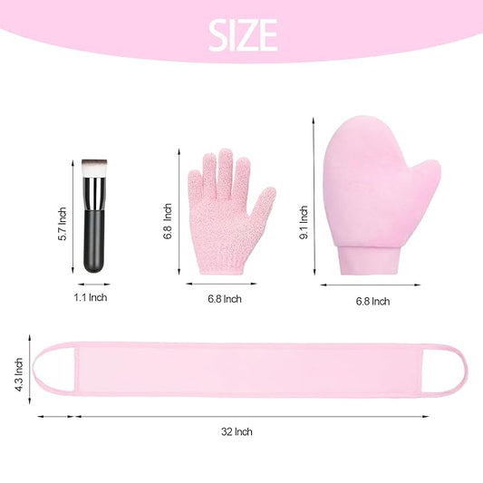 UNIMEIX 4 Pack Self Tanning Mitt Applicator Kit Set Self Tan Back Applicator with Self Tanning Glove for Self Tan Mitt Mini Self Tan Glove and Sunscreen Brush (Pink)