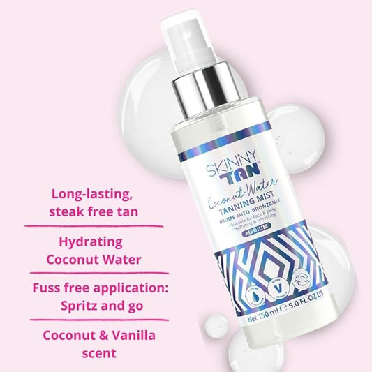 Skinny Tan Coconut Water Tanning Mist - Refreshing, Non-Sticky, and Fast Absorbing Formula - Formulated with Ultra-Hydrating Coconut Water - Delicious Tropical and Vanilla Scent - Medium - 5 oz