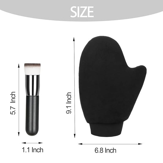 UNIMEIX 2 Pack Self Tanning Mitt Applicator Kit Set Self Tan Back Applicator with Self Tanning Glove for Self Tan Mitt Mini Self Tan Glove and Sunscreen Brush (Black)