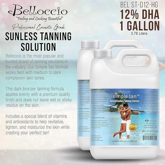 Belloccio Simple Tan Gallon Bottle of Professional Salon Sunless Tanning Solution with 12% DHA and Dark Bronzer Color Guide