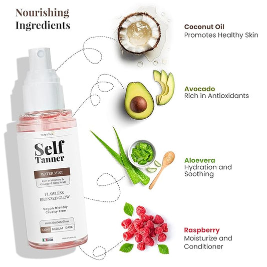Team Tan Self Tanning Water - Vitamin Infused Self Tanner Mist for Hydrating Face and Body, Sunless Tanning Spray for Fake Tan, No Streaks, Orange Tints or Nasty Smell (Light)