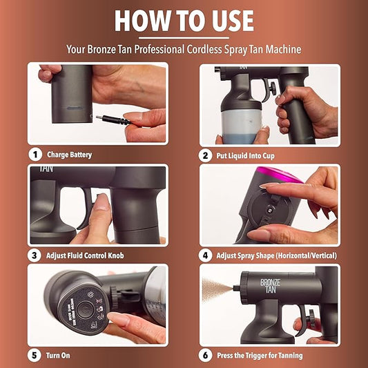 Cordless Spray Tan Machine - Portable and Rechargeable Spray Tan Gun for Salon and Home Use - Lightweight Airbrush Tanning Machine With Even Coverage Sunless Tan Technology by Bronze Tan