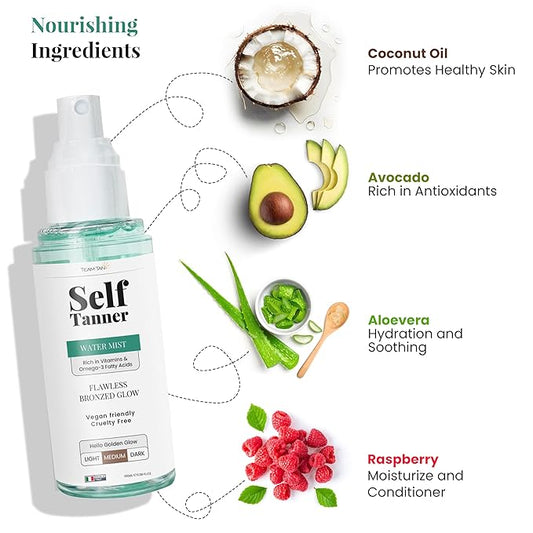 Team Tan Self Tanning Water - Vitamin Infused Self Tanner Mist for Hydrating Face and Body, Sunless Tanning Spray for Fake Tan, No Streaks, Orange Tints or Nasty Smell (Medium)