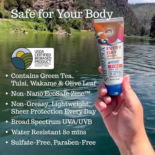 SPF 45 Every Day Tint Mineral Sunscreen | 2.5 Fl Oz Biodegradable, Paraben Free & Reef Safe Sunscreen | Non-Greasy Tinted Sunscreen For Face | Protection Against UVA & UVB for Face & Body