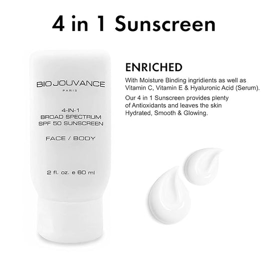 4 In 1 Sunscreen 2oz(60ml) | SPF50 Sunblock + Moisturizer + Anti-Aging + Antioxidant | Face&Body Sensitive Skin | Made in France