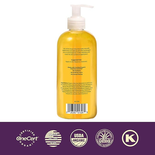 Lily Of The Desert Gelly Moisturizer - 99% Organic Aloe Vera Gel for Skin, After Sun Care with Aloe, Vitamin E Oil, and Vitamin C for Sunburn Relief, 16 Fl Oz