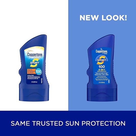 Coppertone SPORT Sunscreen SPF 100 Lotion, Water Resistant Sunscreen, Body Travel Size 3 Fl Oz