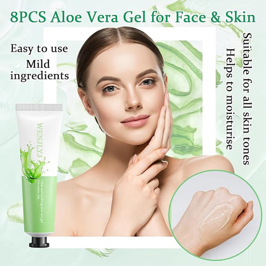 8PCS Aloe Vera Gel for Face & Skin,Organic Aloe Vera Gel,Hydrating Aloe Vera Gel for Travel Size,Moisturizing Aloe Gel for Skincare,After Sun Lotion for All Skin Type