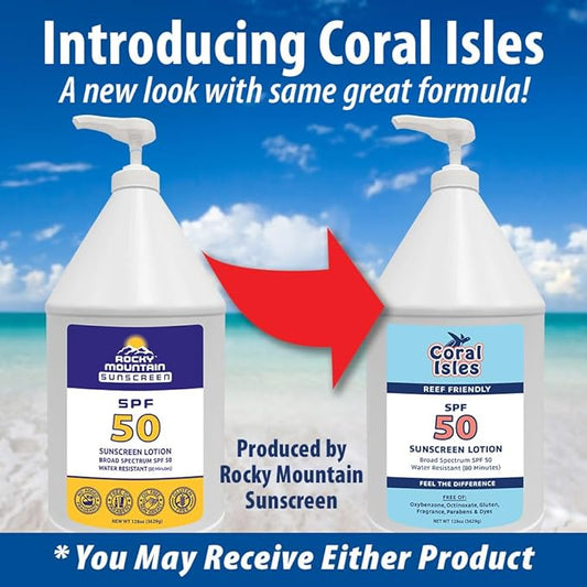 Rocky Mountain Sunscreen SPF 50 Gallon Lotion | Broad Spectrum UVA/UVB Protection | Hawaii 104 Reef Act Compliant (Oxybenzone & Octinoxate Free) | Water Resistant 80 Min. | Fragrance Free | 128 Fl Oz