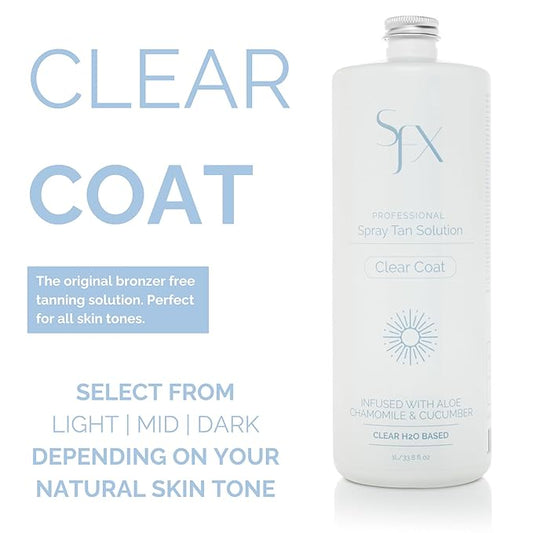 SunFX CLEARCOAT All Natural Spray Tanning Solution | No Bronzers | Infused with botanicals (1L/33.8 fl oz, MID SUMMER)