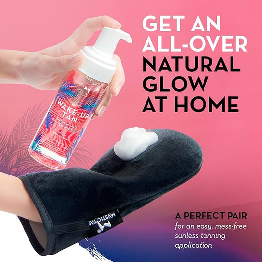 Mystic Tan Self Tanning Bundle: Wake-Up Tan Self Tanner Water Mousse 5.5 fl. oz. + Streak Free Tan Applicator Mitt - Hyaluronic Acid Overnight Moisturizer, Easy-to-Use, Works While You Sleep