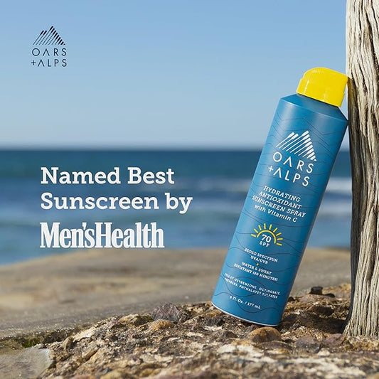 Oars + Alps Hydrating SPF 70 Sunscreen Spray, Infused with Vitamin C and Antioxidants, Water and Sweat Resistant, 6 Oz, 2 Pack