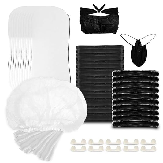 Bronze Tan Spray Tanning Essentials Kit: 10 Each Hair Nets, Nose Plugs, Sticky Spray Tan Feet Pads & Disposable Undergarments - Premium Quality Accessories for Salons, Mobile Tanning & DIY Home Use