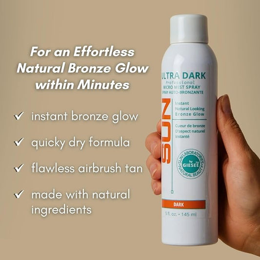 Sun Laboratories By Giesee Ultra Dark Micro Mist Spray Tanner - Self Tanning Lotion, Sun Tanning Lotion, Spray Tan Solution - Instant Tan Spray, Self Tanner Face Mist, Sunless Tanning Water Spray
