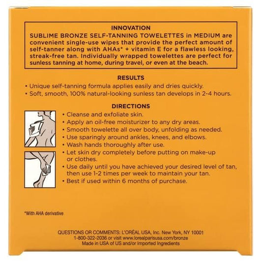 L'Oreal Paris Sublime Bronze Self-Tanning Body Towelettes, 6-Count (Pack of 2)