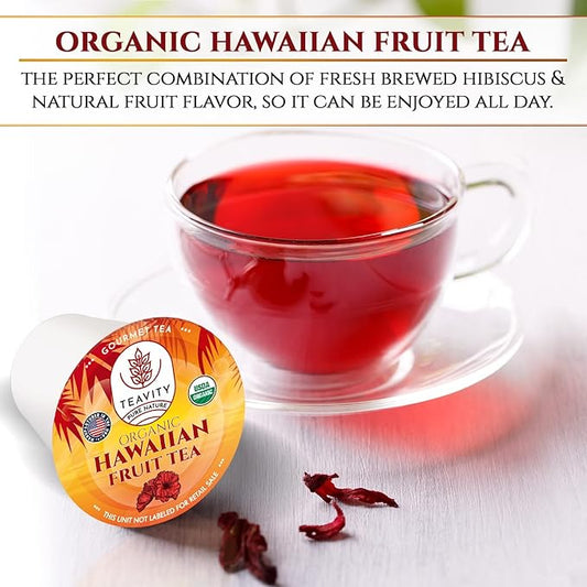 Organic Hibiscus Tea Pods with Peach, Mango, & Passionfruit - Naturally Decaf Tea - Hawaiian Fruit Tea by Teavity (36 Tea Pods)