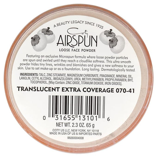 Coty Airspun Face Powder, Translucent Extra Coverage, 2.3